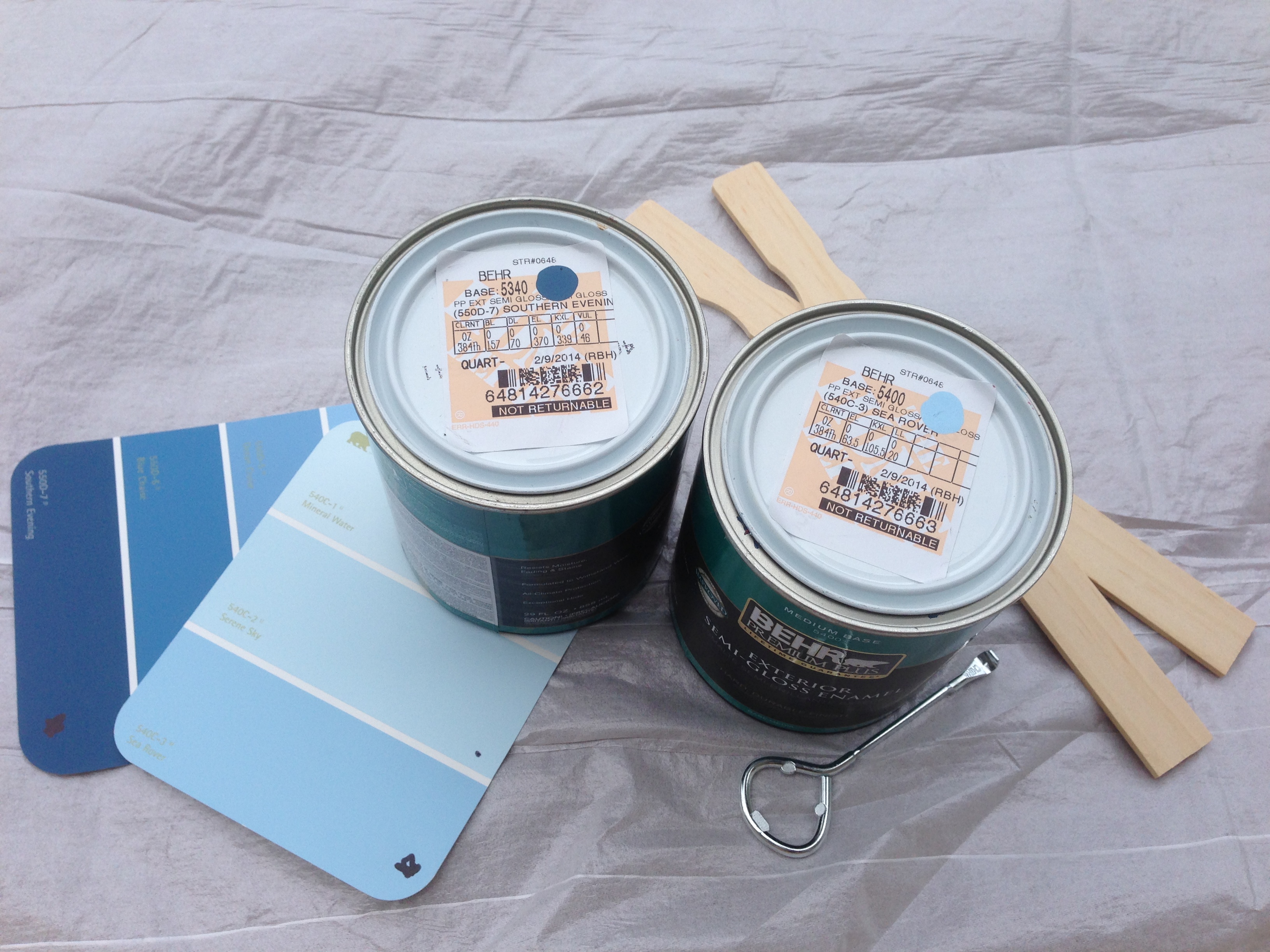 I went for a two-toned look – so I selected two different shades of blue. Darker to line the inside of the windows and lighter for the main frame. I chose blue since that was the most recent paint color of the window – I wanted to honor the piece.