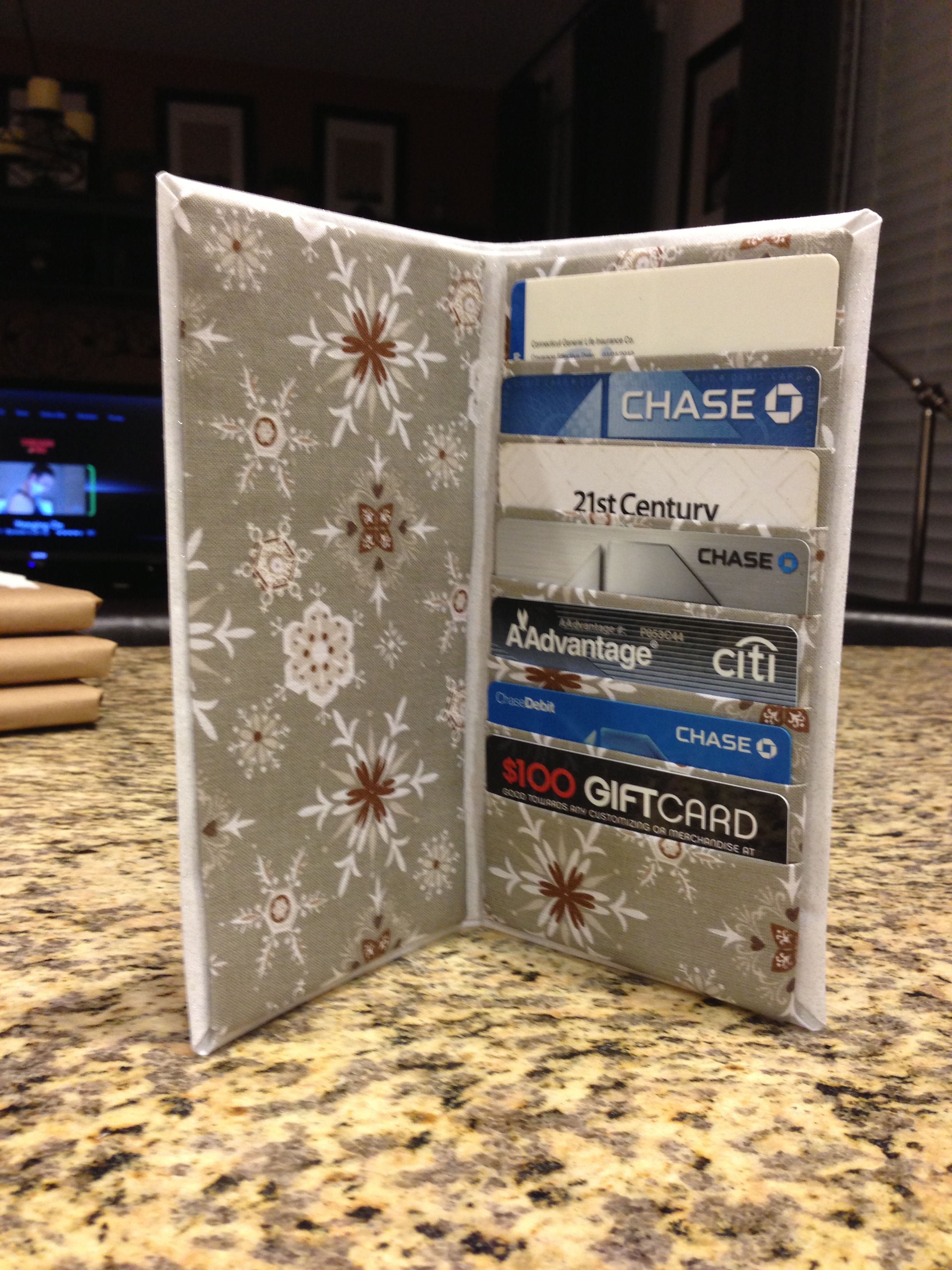 Since she wouldn’t have anything really to open and 7 gift cards don’t fit well into an envelope, I decided to make a custom gift card wallet.