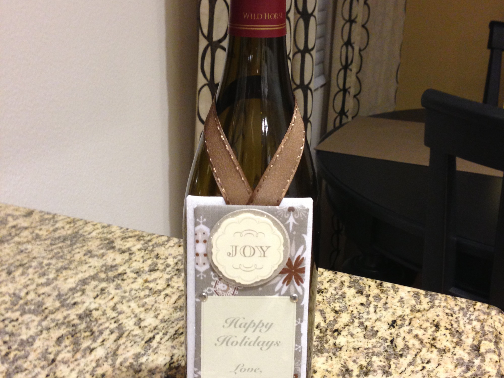 These are kept in the bar drawer, and any time I have a holiday event to go to I can just pop one around the neck of a bottle of champagne or wine and I’m off and running. I still have a few from the original batch!